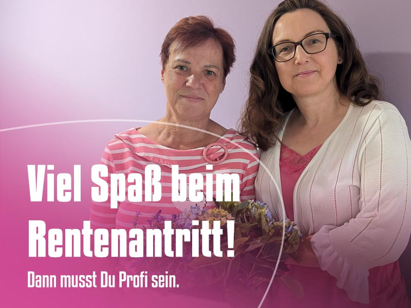Was ist Ihr Beruf? Pflegefachkraft… ach nee: Rentnerin. Es ist für alle eine Umstellung und manchmal kann es ein bisschen dauern, bis man sich daran gewöhnt hat. Schon am 24. Juni hatte unsere Kollegin Frau Welle aus Beelitz ihren letzten Tag bei uns. Sie darf sich nun offiziell „in Rente“ nennen.